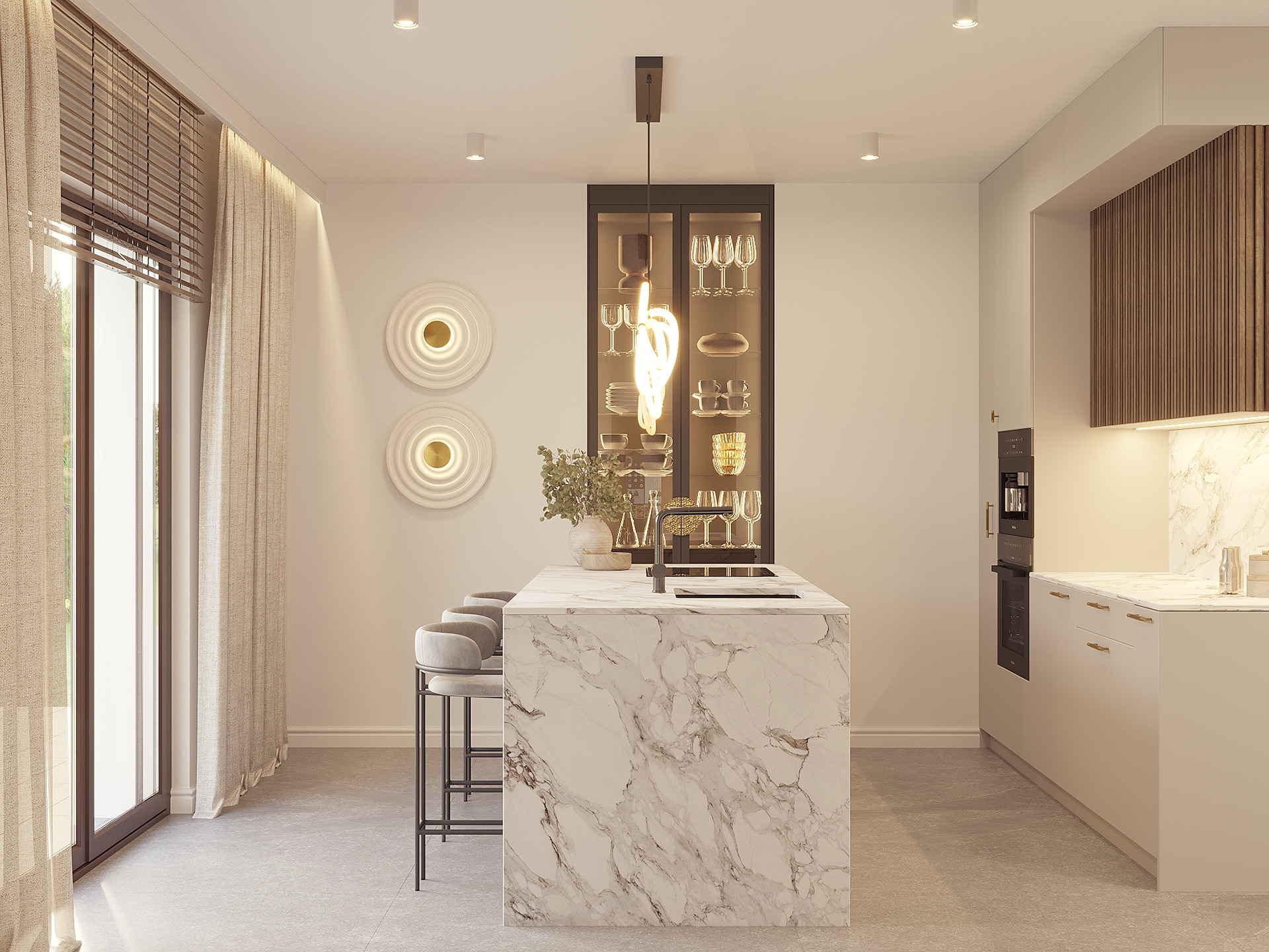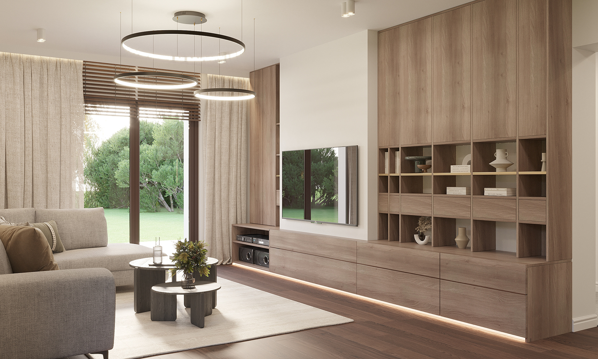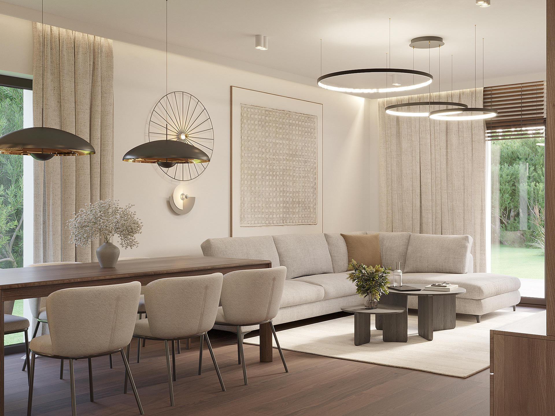 Projekt wnętrz domu pod Toruniem oparto na idei spokojnej, ponadczasowej przestrzeni do codziennego życia. Naturalne materiały, stonowana paleta barw i konsekwentna praca detalem tworzą wnętrze, które jest jednocześnie funkcjonalne i wyciszając