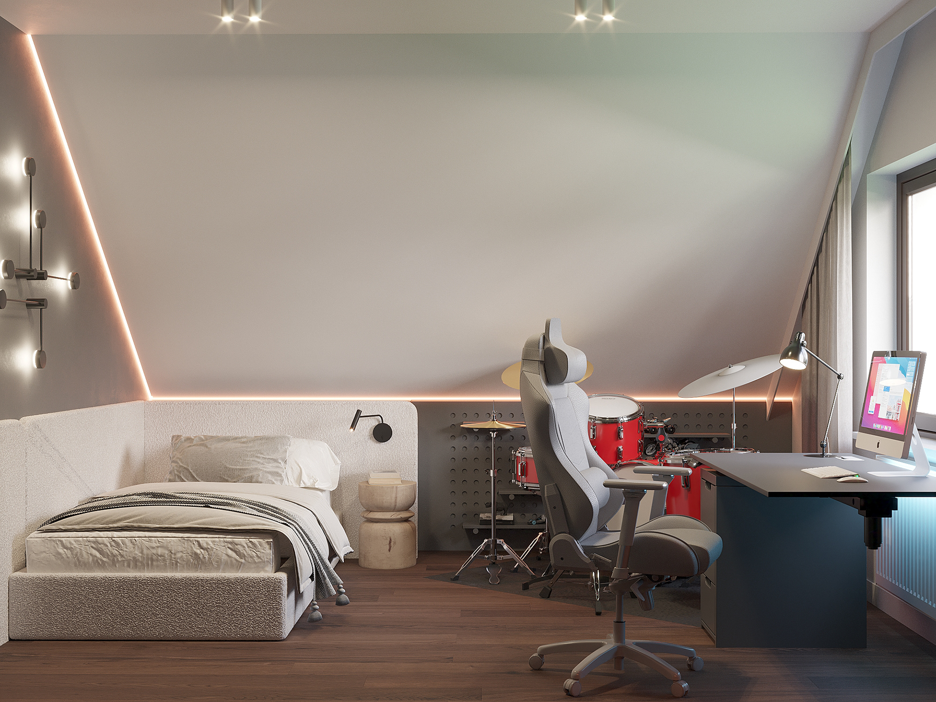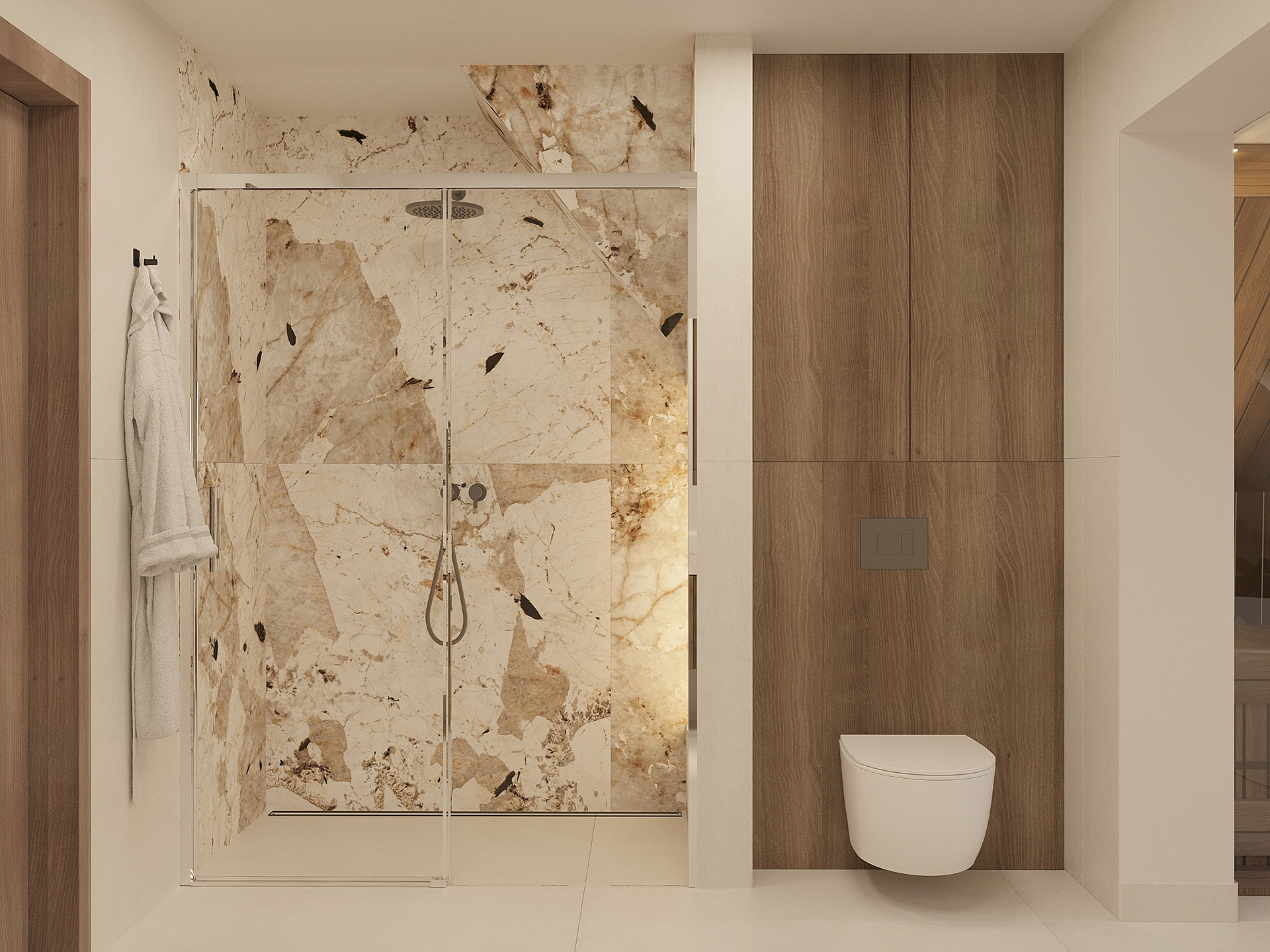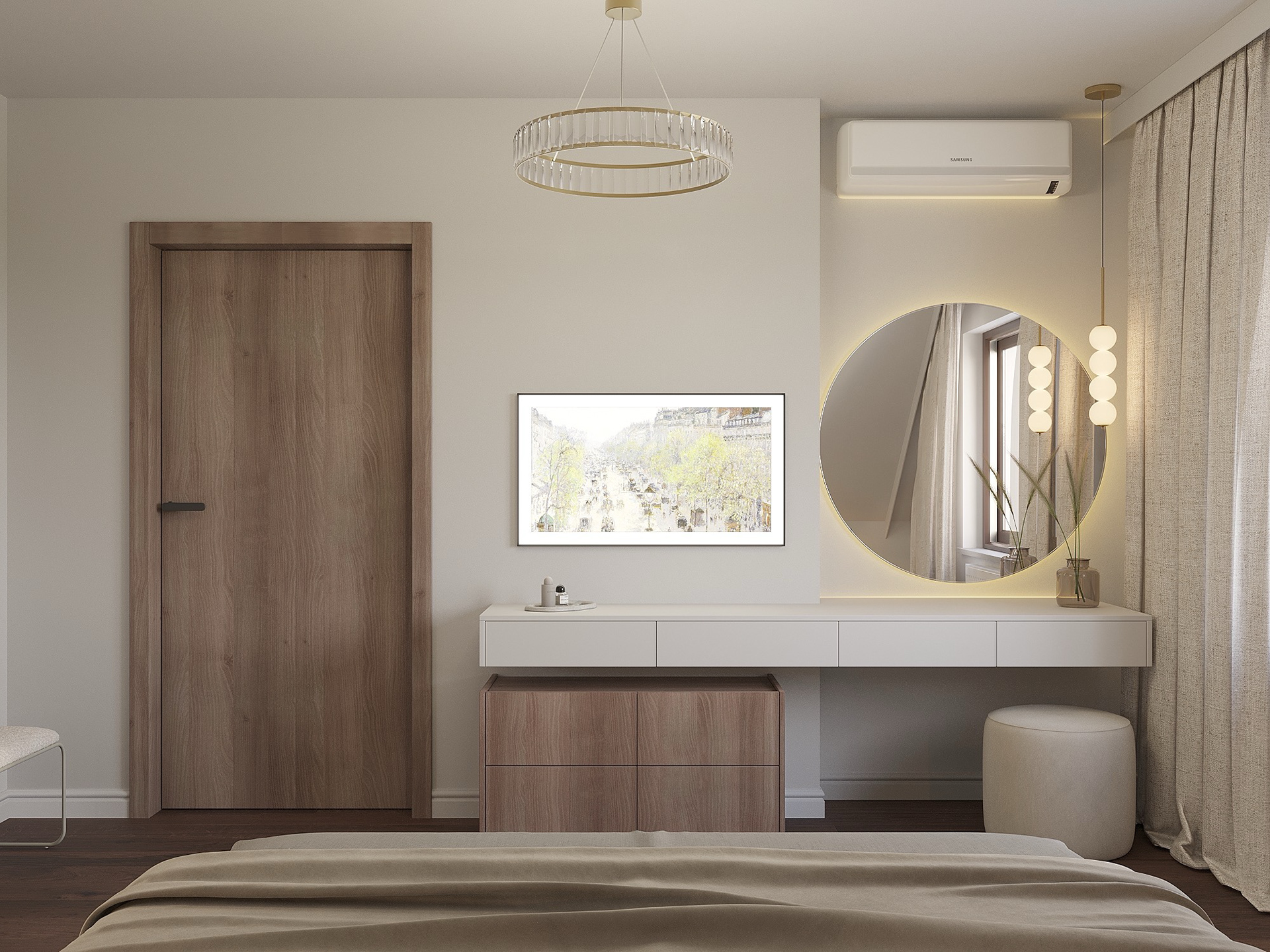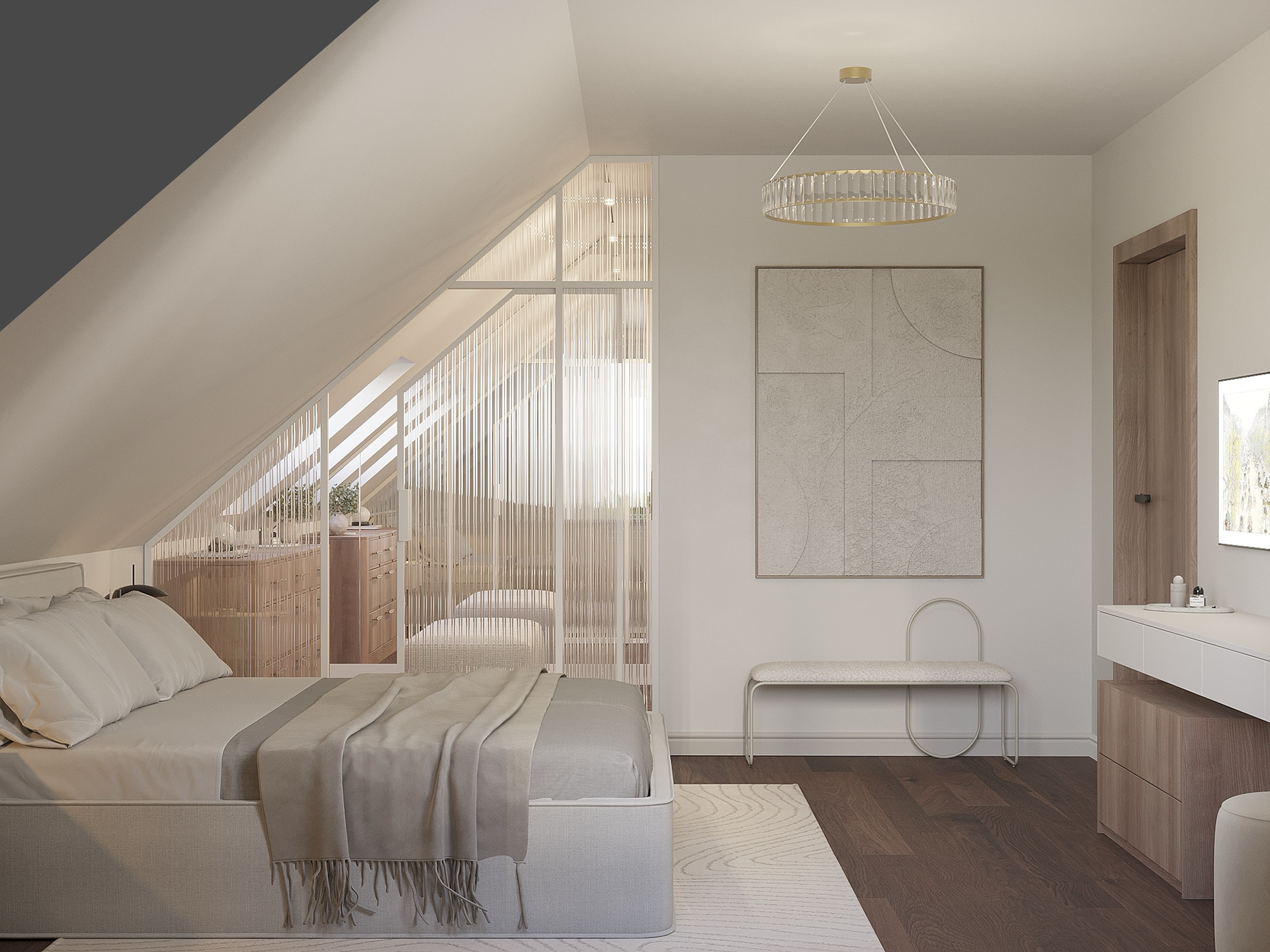 Projekt wnętrz domu pod Toruniem oparto na idei spokojnej, ponadczasowej przestrzeni do codziennego życia. Naturalne materiały, stonowana paleta barw i konsekwentna praca detalem tworzą wnętrze, które jest jednocześnie funkcjonalne i wyciszając